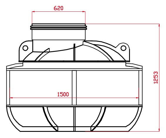 - Duży właz rewizyjny DN600 – zapewnia wygodny dostęp do wnętrza i możliwość montażu pomp