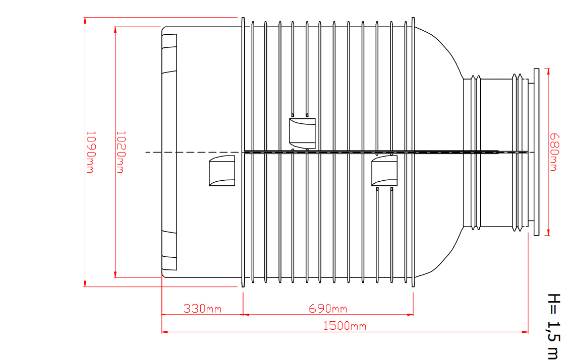 • Studnia włazowa 1000/1500 z polietylenu , w komplecie z pokrywą oraz podstawą konsoli wodomierzowej