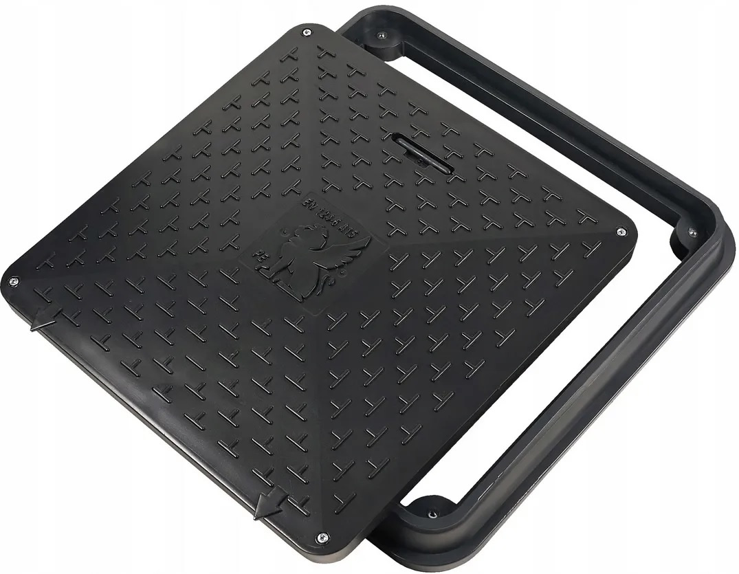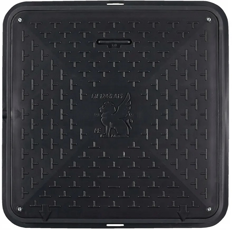 - Właz PE kwadratowy 700 CZARNY, idealny do zastosowania min. w ogrodzie do instalacji na rewizyjnych studzienkach kablowych, sieciach wodociągu i kanalizacji, na chodnikach, w strefach zielonych.