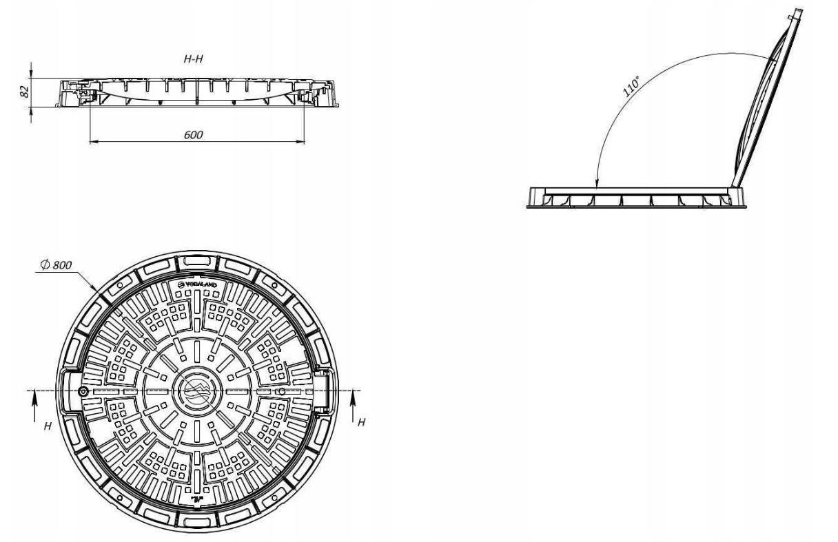 Należy do kategorii włazów lekkich, klasa obciążenia – A15, ruch rowerowy i pieszy. wg normy EN 124.